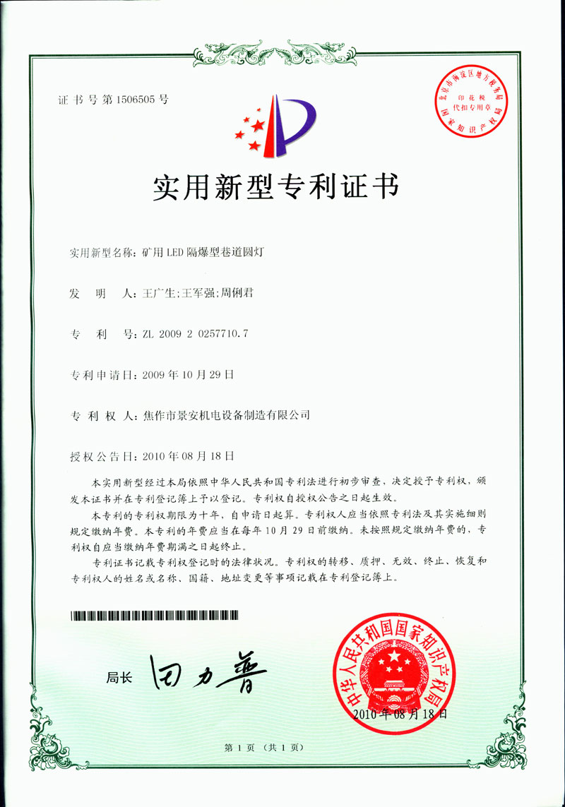 焦作景安公司始終堅持“以科技為先導,以市場為導向”的發展戰略,不斷進行新產品的研制和開發,在國家“六五”到“九五”期間,承擔和參與了國家多項科技攻關項目,產品的技術和質量一直處于全國同行業領先位置。并被中國電器工業協會評定為“質量可信產品”。特別是在礦用防爆燈領域,礦用隔爆型半導體(LED)照明燈具,2008年列入國家火炬計劃,獲2009年河南省工業和信息化廳的科技成果二等獎,并擁有多項國家專利。